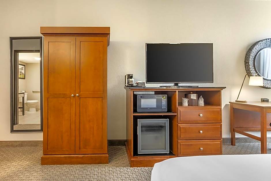 Guest-friendly amenities include pet friendly (extra charges), an outdoor swimming pool, free Wi-Fi, and private on-site parking. The property also offers a free fitness center, a 24-hour front desk, non-smoking rooms, wheelchair accessibility, an elevator, air conditioning, free toiletries, and a spa tub, with meeting/banquet facilities available for an extra fee.